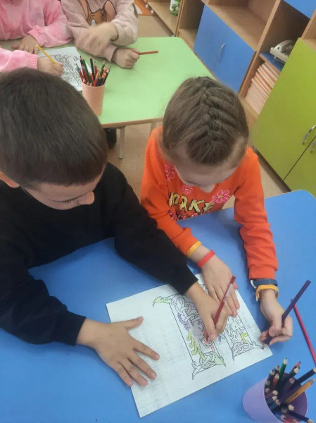 Кульминацией мероприятия стало творческое задание: каждый ребенок превратил простую первую букву своего имени в сказочную буквицу. В ходе работы дети не только закрепили навыки образного мышления и мелкой моторики, но и учились работать в команде. Творческий подход к заданию помог ребятам развить чувство прекрасного и по-новому увидеть красоту Божьего мира.