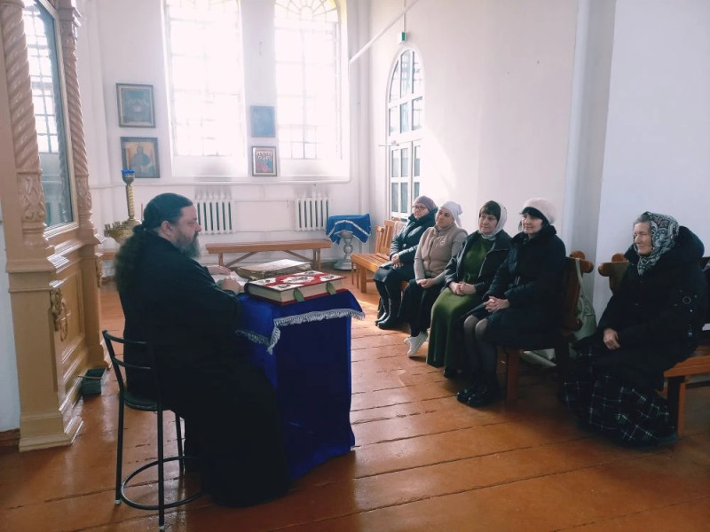 В храме святителя Тихона Задонского станицы Кривянской Октябрьского района прошла тематическая встреча, приуроченная ко Дню православной книги. Настоятель храма протоиерей Константин Федосеев собрал прихожан для душеполезной беседы.