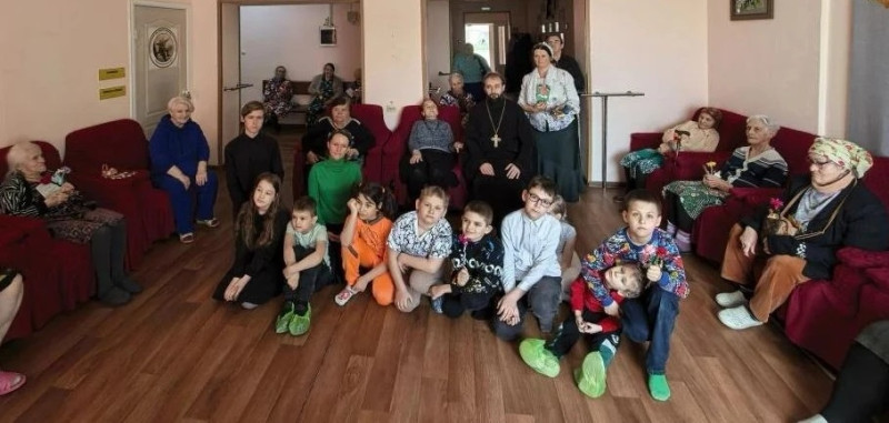 По сложившейся доброй традиции, в преддверии великих праздников, благочинный приходов Нижнедонского округа протоиерей Сергий Яценко вместе с учащимися церковно-приходской воскресной школы «Благовест» храма Архистратига Михаила п. Каменоломни Октябрьского района посетили пансионат для пожилых людей.