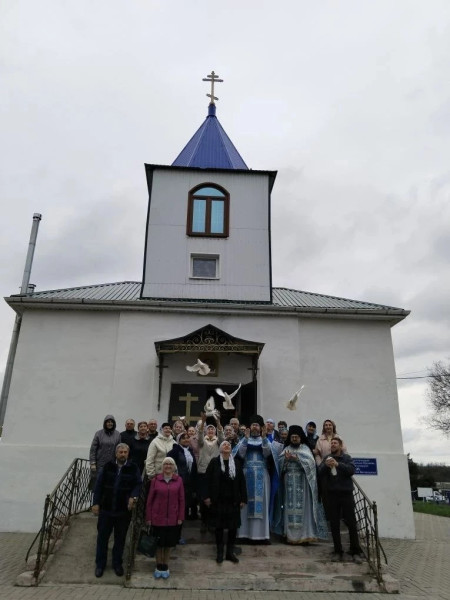 В великий праздник Благовещения Пресвятой Богородицы в храме Успения Пресвятой Богородицы села Алексеевка Октябрьского района было особенно торжественно и радостно. После праздничного Богослужения прихожане, следуя доброй традиции, собрались вместе с настоятелем иеромонахом Олегом (Васильченко), чтобы выпустить в небо белых голубей.