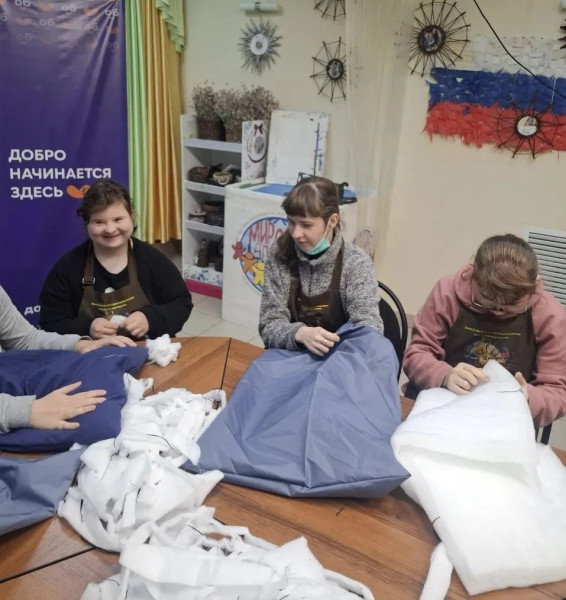 Воспитанники детской творческой мастерской для детей-инвалидов «Волшебный стежок» Октябрьского района вносят свой вклад в поддержку бойцов, находящихся на лечении. Мастерская является одним из направлений социальной организации детей-инвалидов «Мир один для всех», которая занимается адаптацией детей с инвалидностью, людей с отклонениями в интеллектуальном развитии и психическими заболеваниями в современное общество.