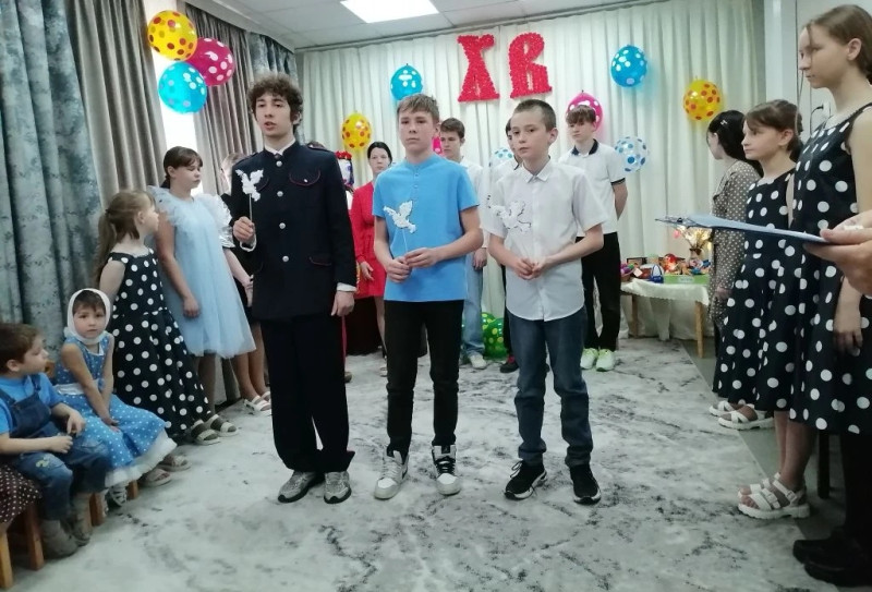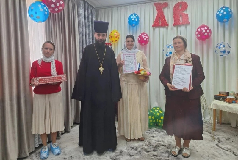 Гости готовят для ребят небольшое театрализованное представление, вместе участвуют в концертных номерах, а затем присоединяются к поздравлениям отца Сергия и вручают воспитанникам приюта сладкие пасхальные подарки.