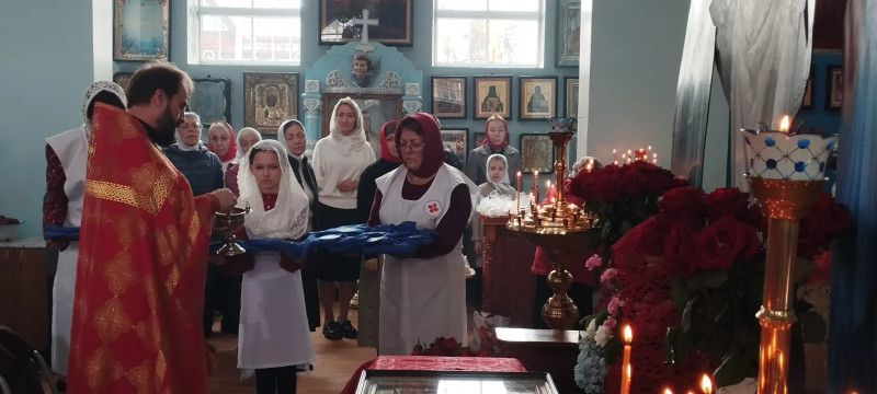 По окончании Божественной литургии настоятель храма, благочинный Нижнедонского округа протоиерей Сергий Яценко, а также клирик прихода иерей Максим Коваленко совершили молебен.