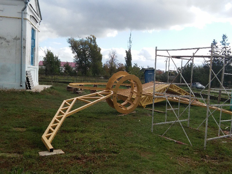 На данный момент общими усилиями изготовлена металлоконструкция для установки в центральной части храма нового купола.