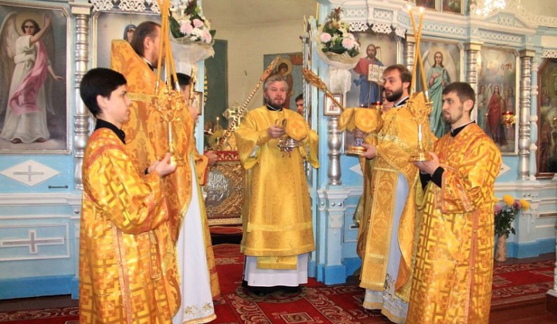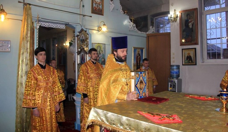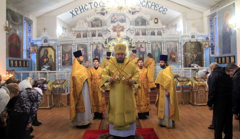 Во время богослужения епископ Симон вознес молитву о мире и преодолении междоусобной брани на Украине.