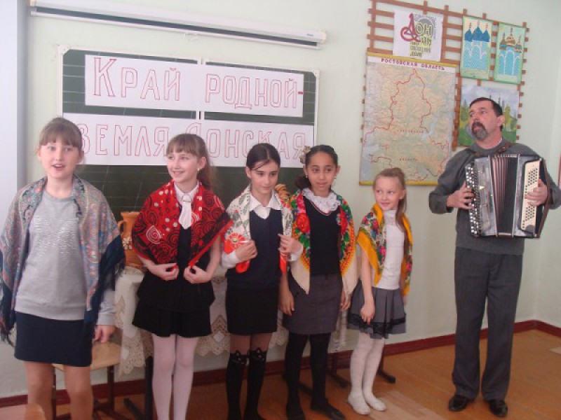 В ходе мероприятия «Наш край Донской – крупиночка России…», которое подготовили и провели учитель истории Кислица И.В. и ст.вожатая Задонская Е.Ю., учащиеся 6-7 классов смогли совершить увлекательное путешествие по Ростовской области от момента ее основания до наших дней. Началось путешествие с просмотра фильма «Россия – это мы! Выдающиеся люди Ростовской области», а продолжилось в гостях у донского казачества. Ребята поговорили о возникновении казачества на Дону, а также узнали об особенностях воспитания, быта, традициях донских казаков.