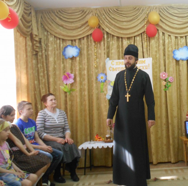 Священник рассказал ребятам о Великом празднике и подарил ребятам подарки. Учащиеся воскресной школы «Благовест» храма Архистратига Михаила показали воспитанникам праздничный концерт.