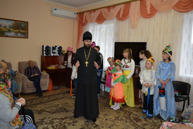 Благочинный приходов Нижнедонского округа протоиерей Сергий Яценко с воспитанниками церковно-приходской воскресной школы «Благовест» при храме Архангела Михаила посёлка Каменоломни посетили местный пансионат для пожилых людей и показали праздничное представление, посвященное Светлому Христову Воскресенью. Со славами поздравления к пожилым и инвалидам обратился благочинный приходов Нижнедонского округа протоиерей Сергий Яценко. Отец благочинный рассказал о значении Пасхи Господней и о традициях связанных с праздничными пасхальными днями.