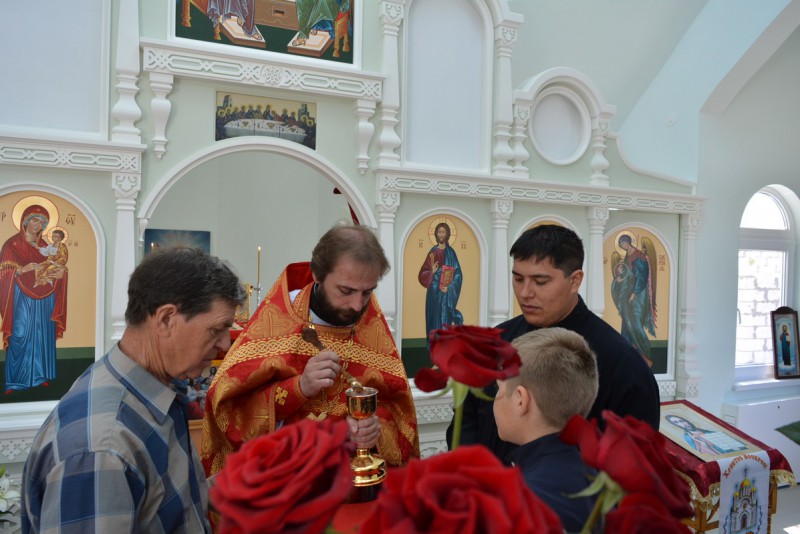 В день памяти святого великомученика Георгия Победоносца в новом храме п.Новозарянский прошла праздничная Божественная Литургия. По благословения епископа Шахтинского и Миллеровского Симона совершил богослужение благочинный приходов Нижнедонского округа протоиерей Сергий Яценко в сослужении с исполняющим обязанности настоятеля прихода иереем Николаем Налеткиным.