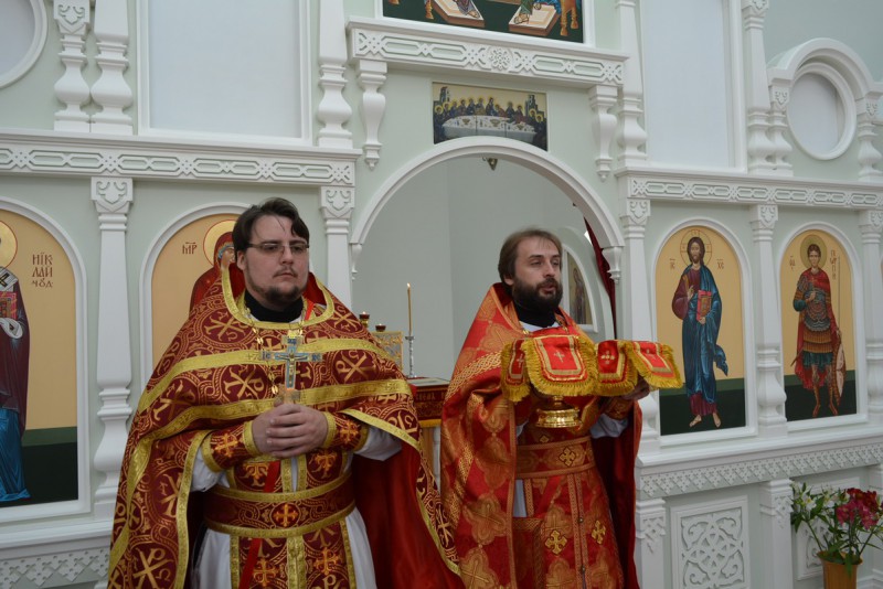 Обращаясь к молящимся, протоиерей Сергий Яценко рассказал о подвигах святого великомученика Георгия Победоносца и о его молитвенном заступничестве православному воинству и народу в годы Великой Отечественной войны.