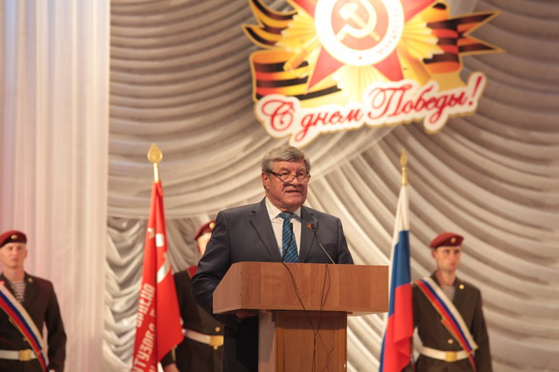 Поздравления ветеранам и слова благодарности за Великую Победу и светлое будущее прозвучали от военного комиссара города Шахты и Октябрьского района - полковника И.И. Вансович, председателя Совета ветеранов войны и труда Б.Н. Полищука.