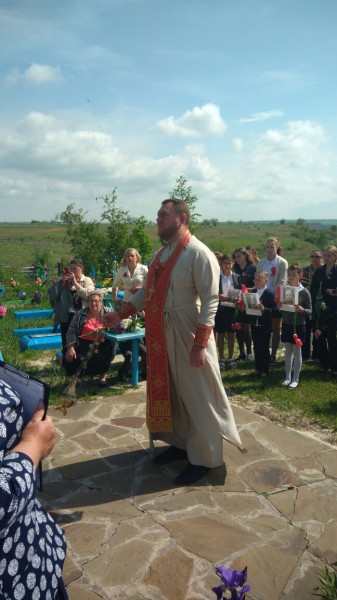 После совершения панихиды священник обращаясь к присутствующим на мероприятии, поздравил всех с Днем Победы.