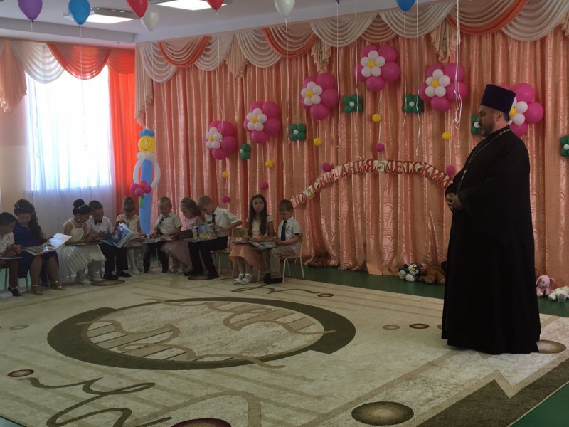 Со словами поздравления и напутствия к выпускникам детского сада «Непоседы» обратился настоятель храма святителя Тихона Задонского протоиерей Анатолий Почтовый.