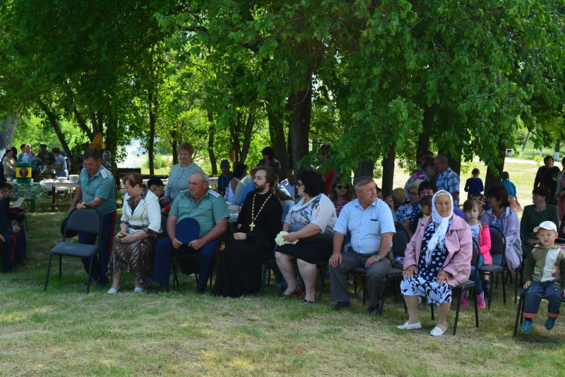 Народные мероприятия начались с общего молебна возле Часовни. Благочинный приходов Нижнедонского округа протоиерей Сергий Яценко обратился с хуторянам со словами поздравления.