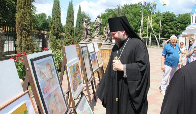 Усилиями епархиального отдела религиозного образования и катехизации для гостей праздника была организована выставка детских рисунков на тему семьи.