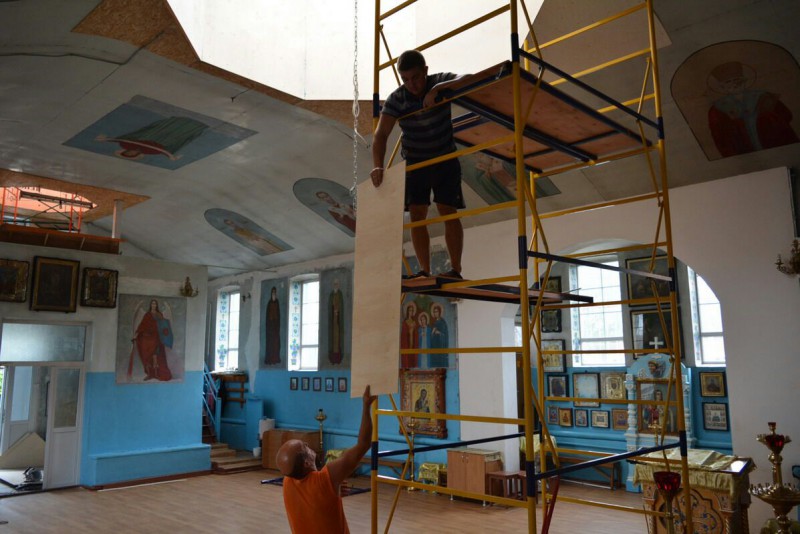 Общими усилиями настоятеля храма Архистратига Михаила п.Каменоломни протоиерея Сергия Яценко и благодетелей прихода, в храме идут ремонтно-восстановительные работы внутренней части кровли.
