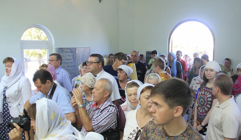 За богослужением молились советник Губернатора Ростовской области, благотворитель храма Вячеслав Николаевич Василенко; глава Октябрьского района Евгений Петрович Луганцев; глава администрации Октябрьского района Людмила Владимировна Овчиева; строители и попечители храма, гости близлежащих поселений, атаманы и казаки Нижнедонского Юрта.