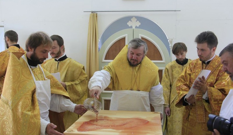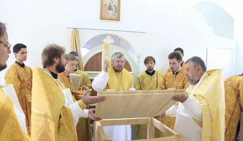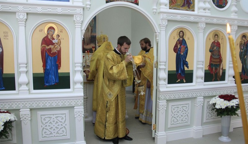 После освящения и совместной молитвы архипастырь совершил Божественную литургию, за которой ему сослужили благочинный приходов Нижнедонского округа протоиерей Сергий Яценко, протоиерей Николай Майдебор, исполняющий обязанности настоятеля храма святого Георгия Победоносца иерей Николай Налеткин, духовенство Покровского кафедрального собора г. Шахты протодиакон Константин Лобов, иеродиакон Флавиан (Васильев).