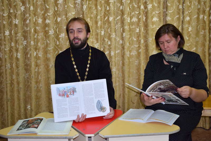 В ходе беседы, дети рассказали священнику о том, что они знают о великом полководце и защитнике земли нашей святом благоверном князе Александре Невском. Отец благочинный рассказала ребятам о детстве и о первых годах княжения Александра Невского, о том, чем ему пришлось заниматься в это время, о победе на реке Неве, которая принесла славу великому князю и, конечно же, о главном сражении против крестоносцев на Чудском озере. Беседа сопровождалась чтением отрывков из жития святого Александра Невского.
