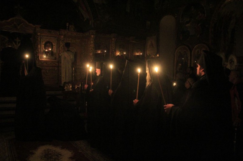 Затем иеромонаха Игнатия облачили в монашеские одежды и вручили крест, свечу и четки.
