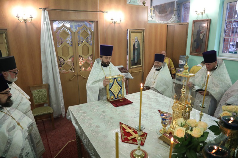 По традиции храмового праздника богослужение началось с молебна, соборно был совершен акафист небесному покровителю и освящена вода. Далее началась Божественная литургия. Многочисленные прихожане в этот день причастились Святых Христовых Таин. В богослужении приняли участие казаки Нижне-Донского юрта и сестры милосердия Марфо-Мариинского Сестричества действующего при храме.