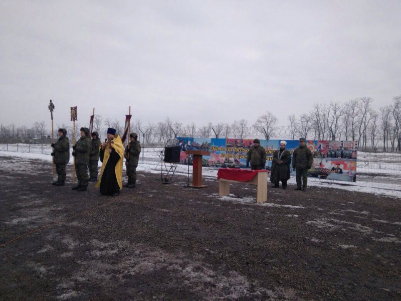 Перед началом смотра, помощник командира по работе с верующими военнослужащими протоиерей Николай Севрюгин совершил молебен.
