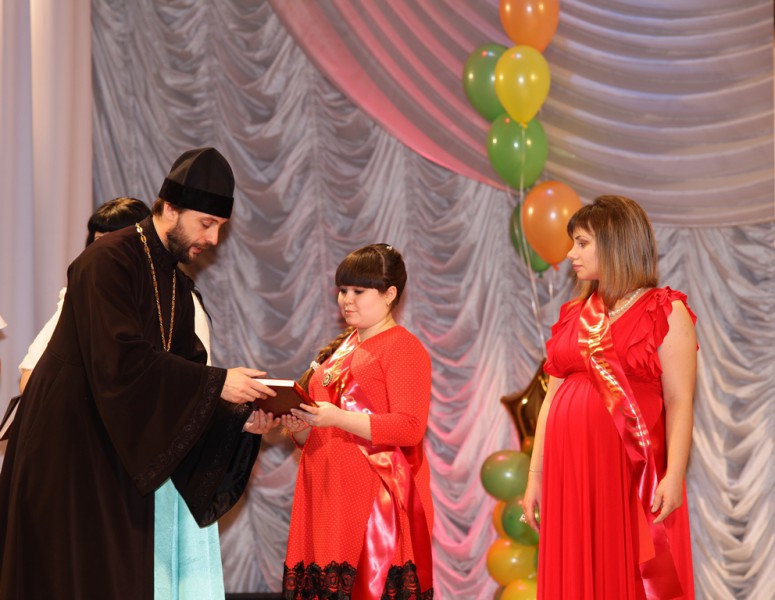 Священник, выразив слова благопожелания, благословил будущих мам и подарил каждой образ Божией матери и книгу жизни – Священное Писание Нового Завета.