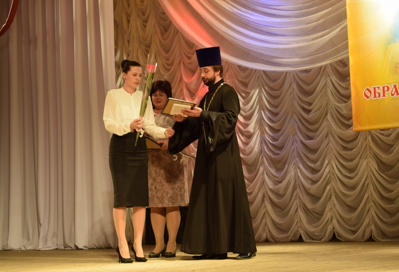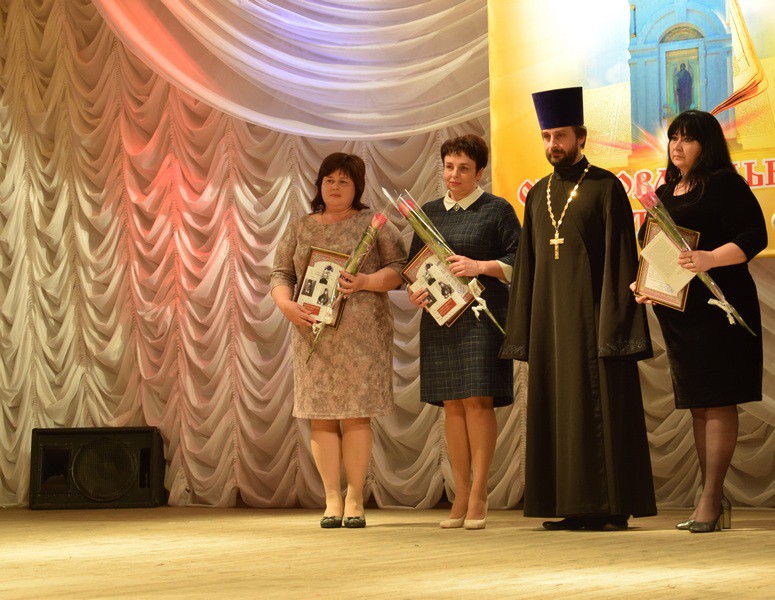 От лица архиерея, благочинный приходов Нижнедонского округа, наградил Благодарственным письмом педагогов, принявших активное участие в конкурсах, посвященных сохранению традиций православной культуры.