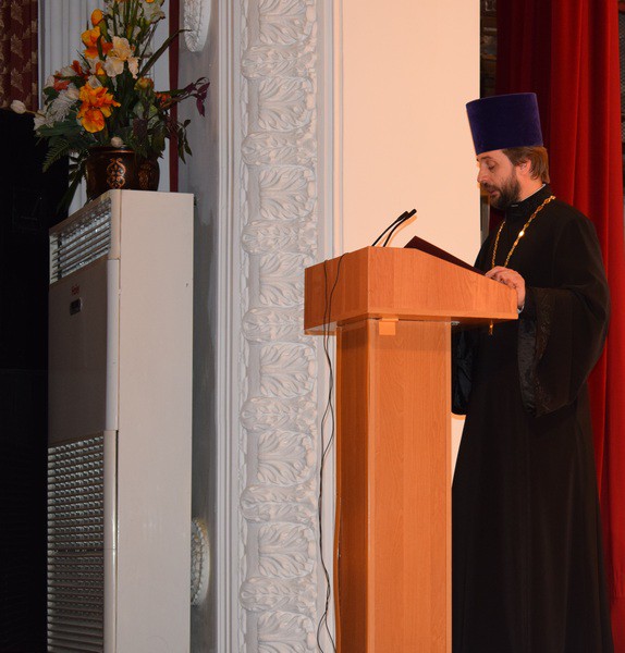 С Приветственным словом от епископа Шахтинского и Миллеровского Симона к участникам XI Пасхальных образовательных чтений обратился председатель Отдела религиозного образования Шахтинской епархии, благочинный приходов Нижнедонского округа Сергий Яценко.
