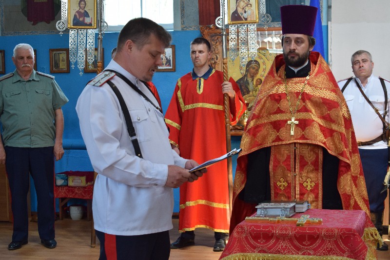 Духовник Юрта, благочинный приходов Нижнедонского округа совершил молитву и новоизбранный атаман перед святым Крестом и Евангелием принял присягу.