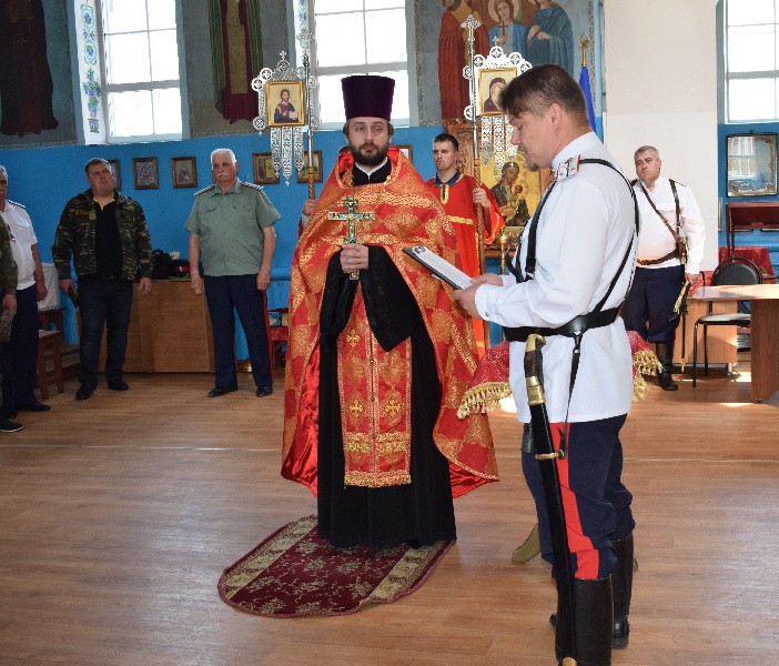 Духовник Юрта, благочинный приходов Нижнедонского округа совершил молитву и новоизбранный атаман перед святым Крестом и Евангелием принял присягу.