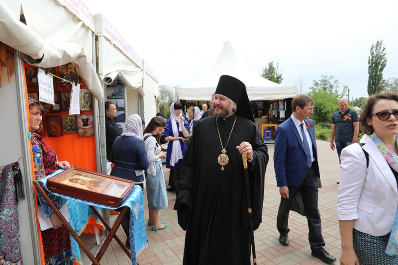 Перед началом выставки-ярмарки все участники собрались в Покровском кафедральном соборе, здесь Правящий архиерей Шахтинской епархии Преосвященнейший епископ Симон обратился к молящимся с архипастырским словом, а духовенство собора совершило молебен на начало всякого благого дела.