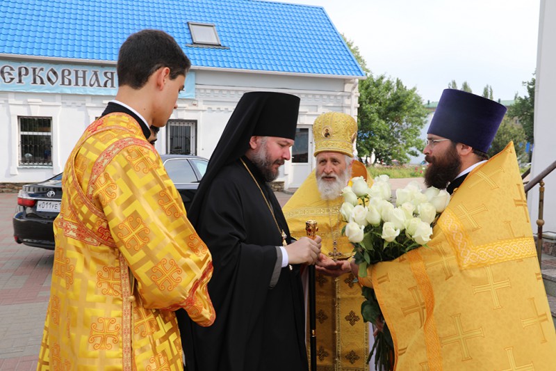 Далее, духовенство и прихожане поздравили архипастыря с праздничным днем.