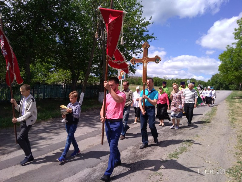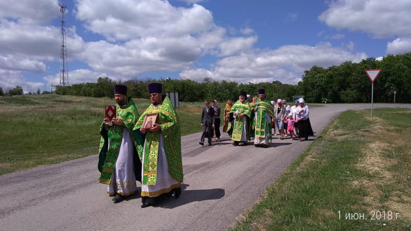 После праздничного богослужения был совершен традиционный Крестный ход к Поклонному Кресту расположенному при въезде в п.Нижнедонской.
