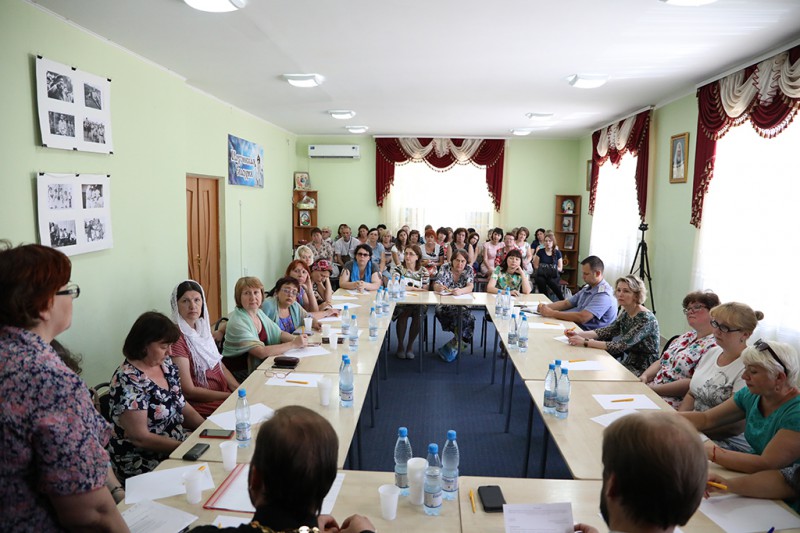 По благословению епископа Шахтинского и Миллеровского Симона в духовно-просветительском центре при Покровском кафедральном соборе г. Шахты прошло рабочее совещание учителей общеобразовательных организаций г. Ростова-на-Дону и Шахт, посвященное перспективам преподавания курсов в составе предметной области ОДНКНР в V – IX классах в 2018-19 учебном году.