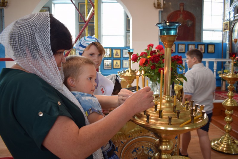 Встретил детей и их родителей настоятель храма, благочинный приходов Нижнедонского круга протоиерей Сергий Яценко, который ознакомил гостей с устройством и историей храма.