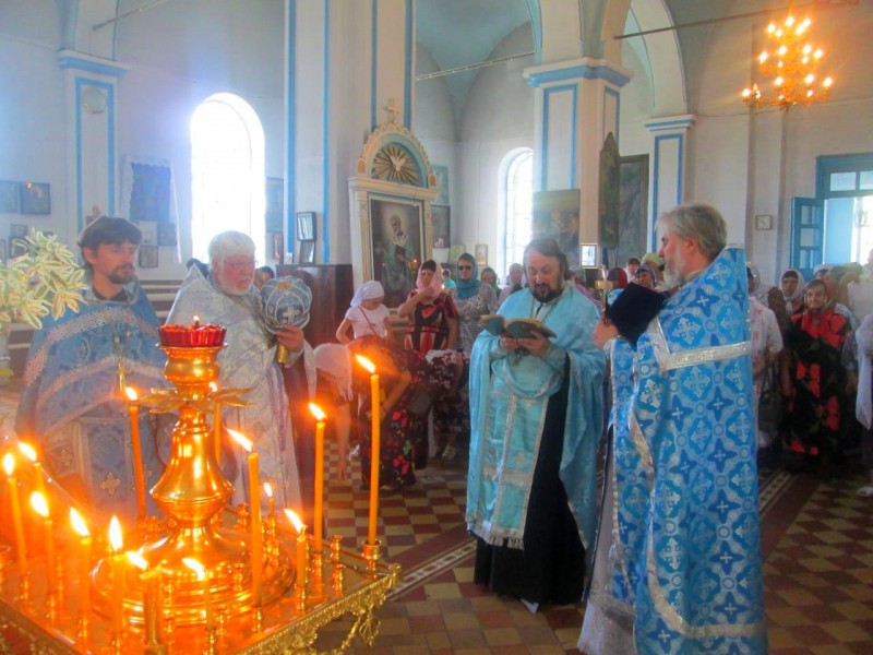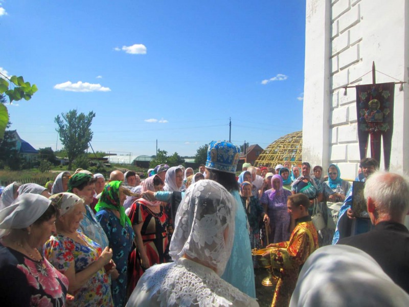 После службы прошел традиционный Крестный ход и священник поздравил молящихся с Престольным праздником.