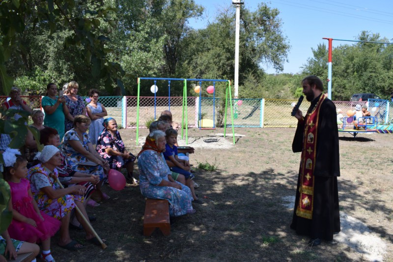 С приветственным словом к собравшимся обратилась Глава Администрации Коммунарского сельского поселения О.В.Безрукавая, выразив слова благодарности жителям за содействие и вручив Благодарственные письма активистам, благоустроившим площадку. Так же с поздравлениями выступила помощник депутата И.В.Кундрата – К.Денисенко, староста поселка А.П. Середа и Благочинный приходов Нижнедонского округа протоиерей Сергий Яценко, который и освятил новую площадку.