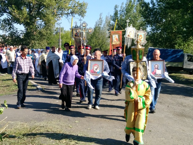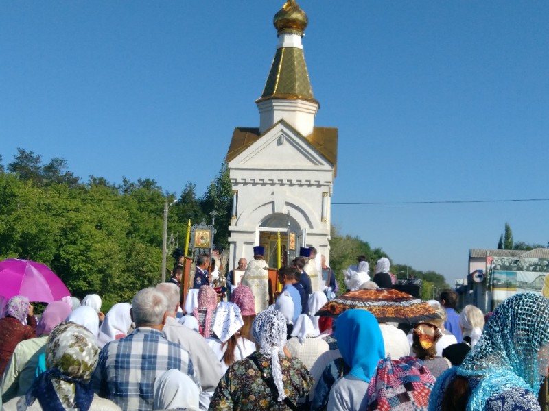 После соборного праздничного богослужения в храме Архистратига Михаила и прочих Небесных Сил бесплотных п. Каменоломни Октябрьского района, состоялся традиционный Крестный ход к Часовне расположенной при въезде в п. Каменоломни.