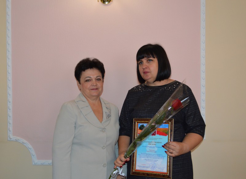 Глава Администрации Октябрьского района Л.В.Овчиева за плодотворную работу по обучению и воспитанию учащихся, значительный вклад в развитие муниципальной системы образования и в связи с профессиональным праздником вручила Благодарственные письма и приветственный адрес главы Администрации района педагогическим работникам и ветеранам педагогического труда, имеющих звание "Заслуженный учитель РФ", а так же победителям муниципальных и региональных конкурсов.