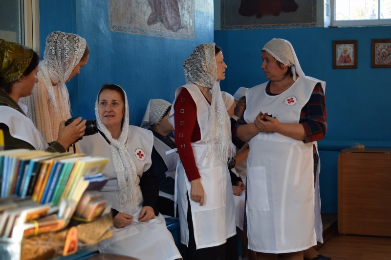 Очередное рабочее совещание сестер Марфо-Мариинского Сестричества прошло в храме Архистратига Михаила п.Каменоломни Нижнедонского благочиния Октябрьского района. Сестры совместно с духовником Сестричества, благочинным приходов Нижнедонского округа протоиереем Сергием Яценко обсудили актуальные вопросы работы Сестричества, взаимодействие с социальными структурами Октябрьского района, рассказали о достигнутых результатах в своей деятельности. Основная тема совещания, предстоящее участие сестер милосердия в Международной акции "Михайловские дни - 2018".