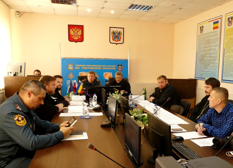 В завершении встречи священники обсудили с первым заместителем начальника ГУ МЧС России по Ростовской области полковником Евгением Кондратьевым ряд практических вопросов.