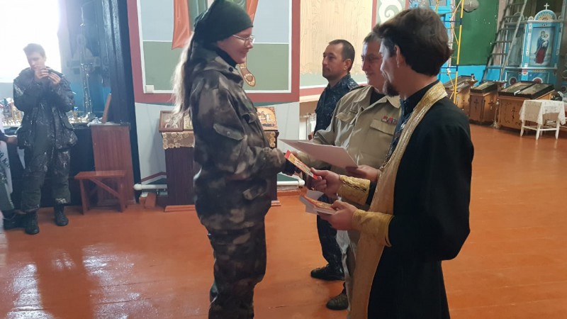 Вернувшихся на исходные позиции, бойцов отряда награждали грамотами в Бессергеневской – в храме святителя Алексия, митрополита Московского. С благодарственным словом к ним обратился настоятель храма протоиерей Андрей Поздняков, который, по сложившейся традиции, провожает отряд в поход и встречает из него.