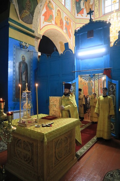 Его Преосвященству сослужили благочинный приходов Нижнедонского округа протоиерей Сергий Яценко, настоятель храма протоиерей Андрей Поздняков и иеродиакон Флавиан (Васильев).
