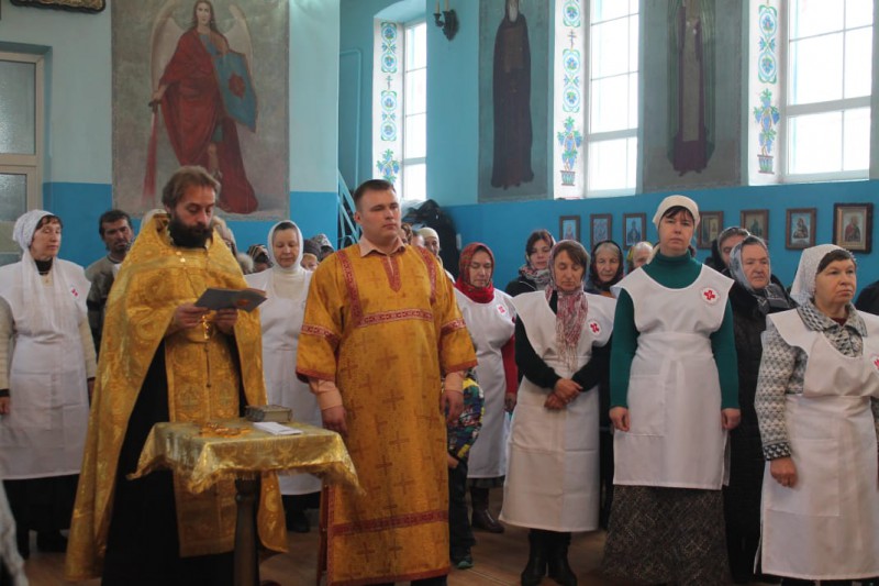 В храме Архистратига Михаила п.Каменоломни Благочинный приходов Нижнедонского округа протоиерея Сергий Яценко с участием сестер Марфо-Мариинского Сестричества, совершил молебен святым женам – мироносицам Марфе и Марии, выразил им слова благодарности за добровольное служение на благо ближним, пожелал дальнейшей помощи Божией и вручил новым сестрам документы подтверждающие их дальнейшее участие в деятельности Сестричества.