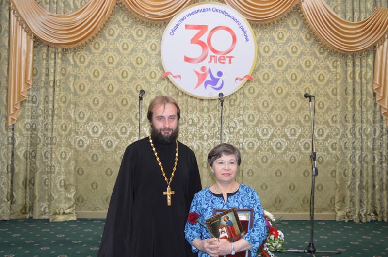 Со словами поздравлений выступили председатель Ростовской областной организации Всероссийского общества инвалидов А.В.Гущин, председатель районной общественной организации ветеранов войны и труда С.П.Кокалевский. Благочинный приходов Нижнедонского округа, протоиерей Сергий Яценко обратился к участникам мероприятия с пастырским словом, выразил слова благодарности инвалидам за активную жизненную позицию, рассказал о деятельности Марфо-Мариинского Сестричества храма Арзангела Михаила п.Каменоломни в работе с инвалидами и наградил сестру милосердия Н.Денчик координирующую деятельность Сестричества с районной организацией инвалидов.