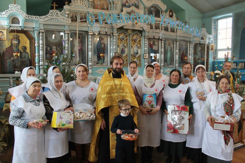 По благословению благочинного приходов Нижнедонского округа протоиерея Сергия Яценко, сестры Марфо-Мариинского Сестричества в день великого праздника Рождества Христова порадовали прихожан храма Архистратига Михаила п. Каменоломни раздачей сладких подарков.