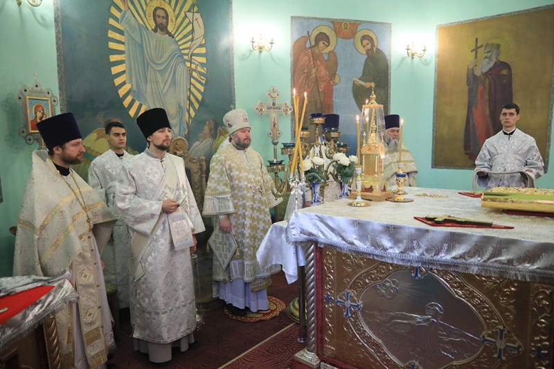 В этот день архипастырю сослужили благочинный приходов Нижнедонского округа, настоятель храма протоиерей Сергий Яценко, клирик храма праведного Иоанна Кронштадтского иерей Виталий Крендясов, клирик храма архистратига Михаила иерей Алексий Чумак, иеродиакон Флавиан (Васильев).