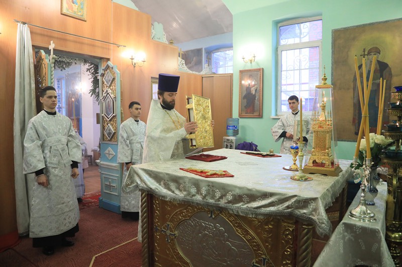 Перед причастием с проповедью к верующим обратился протоиерей Сергий.