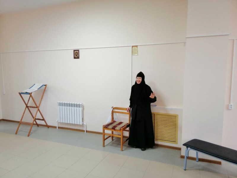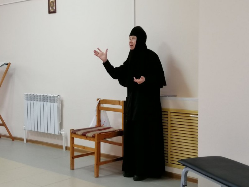 В начале встречи гостья из г. Минска рассказала о себе. Матушка Мария - врач, кандидат медицинских наук, мастер спорта по художественной гимнастике, имеет опыт работы врача-терапевта, невропатолога, преподавателя кафедры физиологии и биохимии института физкультуры (30 лет), биохимика сборной СССР по биатлону 1979-1988 гг. Далее в ее жизни был опыт сестричества и приход в монастырь.